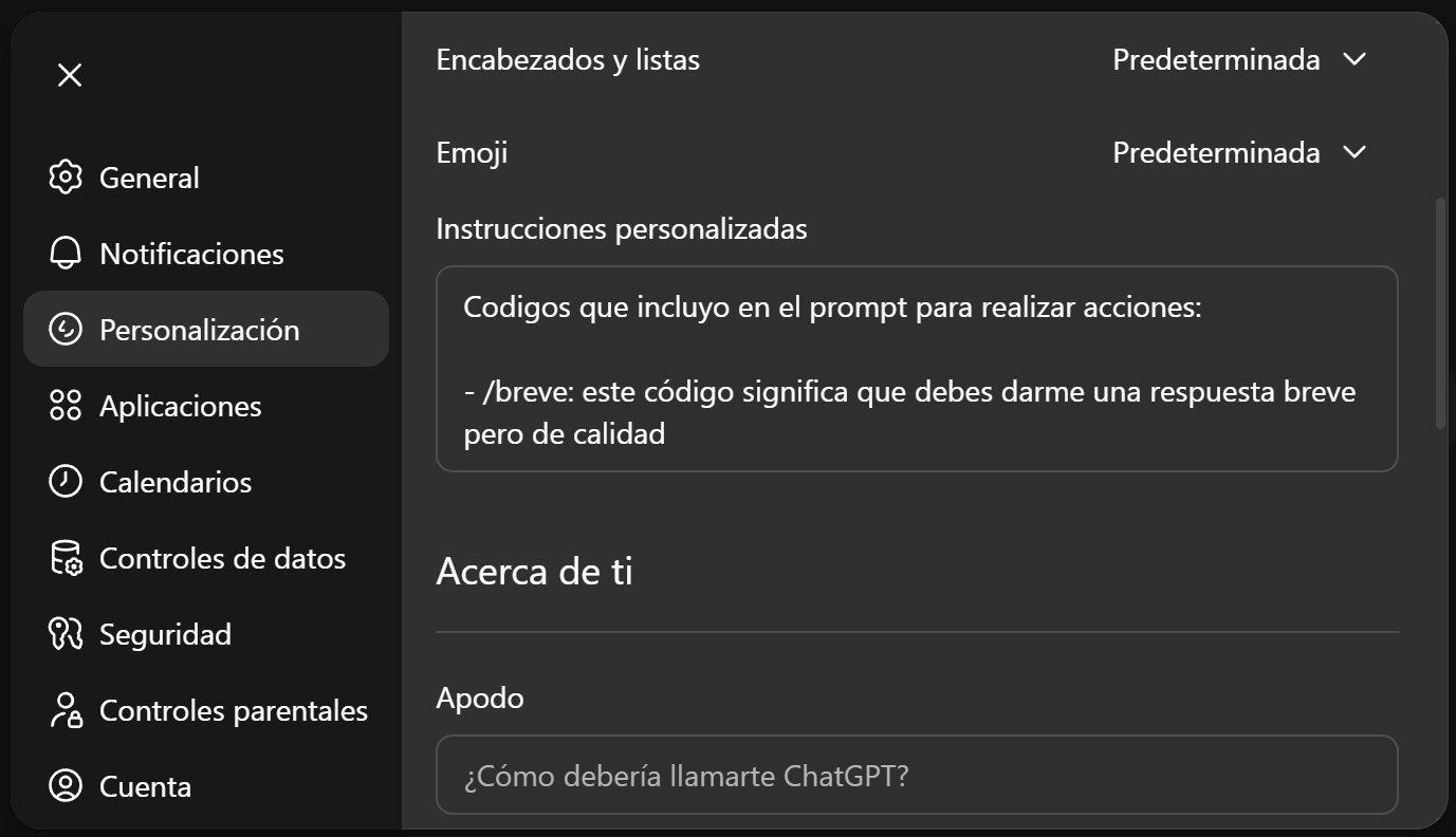 Solo tienes que ir a Tu Perfil > Personalización > Instrucciones personalizadas y añadir este prompt: |